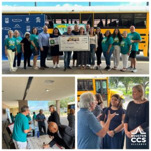 Para comenzar el año escolar, la Houston CCS Alliance y la representante de Calpine, Cathryn Martinez, se unieron al alcalde de Pasadena, Jeff Wagner, para apoyar a los maestros y familias a través del evento “Fill the Bus” de la Fundación Pasadena ISD. Gracias a las donaciones de la Houston CCS Alliance y otros socios comunitarios esenciales, los estudiantes de Pasadena ISD tendrán los materiales que necesitan para un año escolar exitoso.