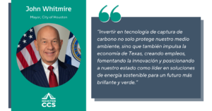 El alcalde de Houston, John Whitmire, la representante estatal del Distrito 143, Ana Hernandez, y la presidenta de la Cámara del East End, Frances Castaneda Dyess, se han unido a otras voces prominentes de la gran área de Houston para reiterar por qué la captura y almacenamiento de carbono es una de las mejores herramientas disponibles para nuestra región para mejorar nuestro medio ambiente, mantener empleos y seguir siendo la Capital Energética del Mundo.